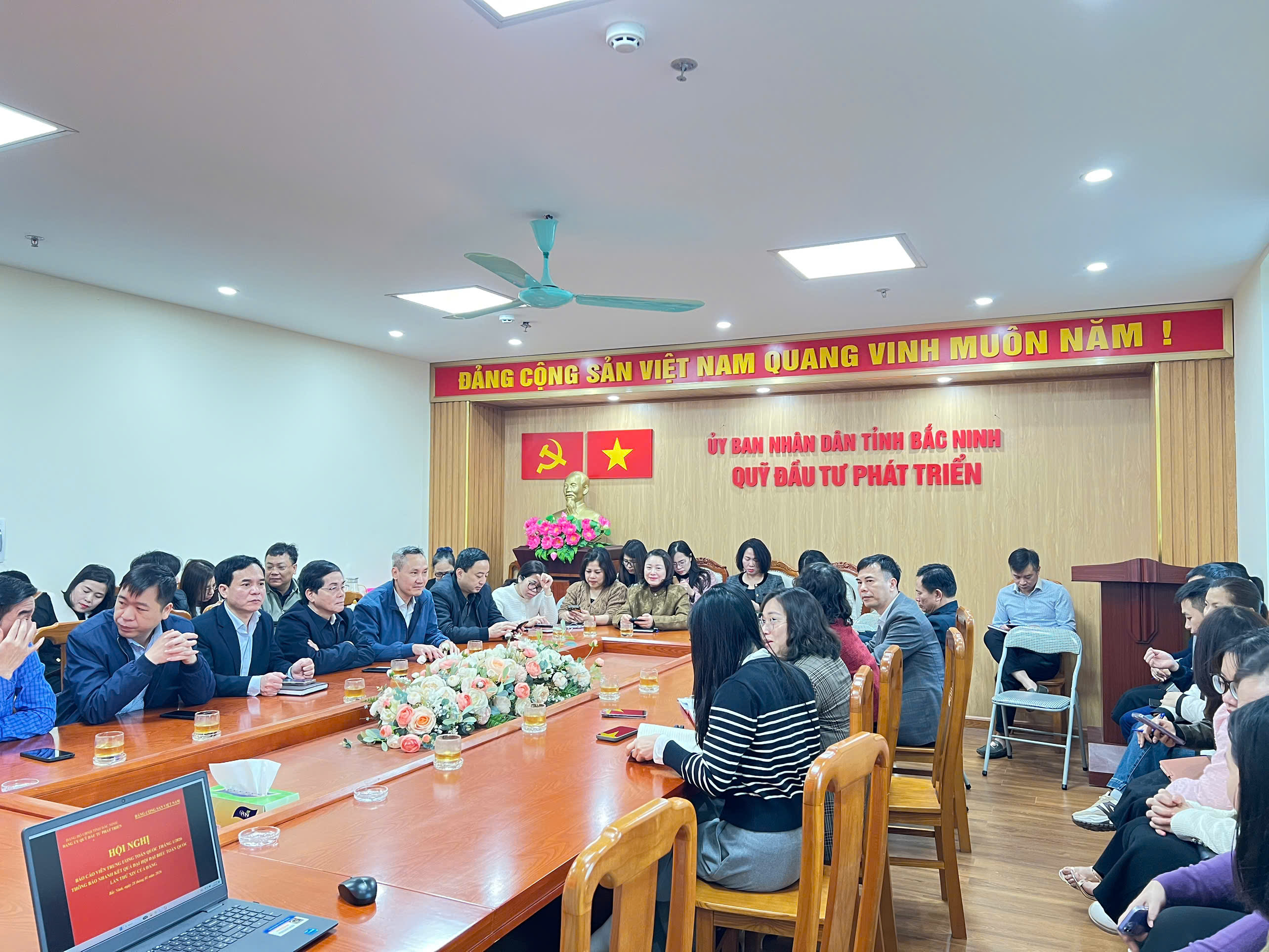 Sáng ngày 28/01/2026, Đảng bộ Quỹ Đầu tư phát triển tỉnh đã tổ chức cho toàn thể đảng viên thuộc Đảng bộ tham dự Hội nghị Báo cáo viên Trung ương tháng 1/2026 bằng hình thức trực tuyến. Hội nghị tập trung thông báo nhanh kết quả Đại hội đại biểu toàn quốc lần thứ XIV của Đảng - sự kiện chính trị trọng đại, mở ra chặng đường phát triển mới của đất nước.